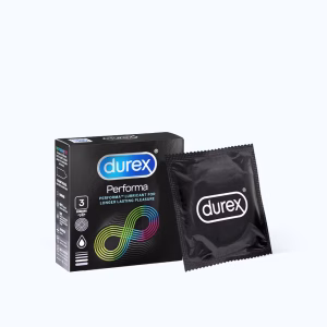 Bao cao su DUREX Performa có gel bôi trơn, kéo dài thời gian quan hệ (hộp 3 cái)