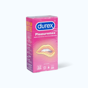 Bao cao su DUREX Pleasuremax có gân và hạt nổi dọc thân bao (hộp 12 cái)