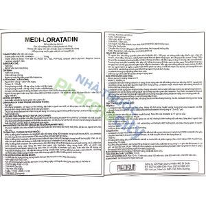 Viên nén Medi-Loratadin 10mg trị viêm mũi dị ứng, mày đay, ngứa (10 vỉ x 10 viên)