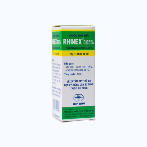 Thuốc nhỏ mũi Rhinex 0.05% trị sung huyết mũi, viêm xoang, viêm mũi dị ứng (chai 15ml)