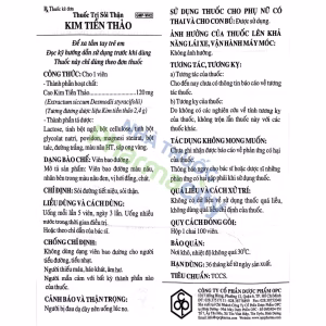Viên nén bao đường Kim tiền thảo điều trị sỏi đường tiết niệu, sỏi thận (hộp 100 viên)