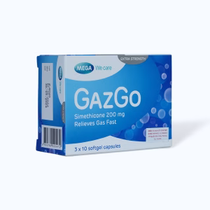 Viên uống GAZGO 200mg trị đầy hơi, chướng bụng, khó tiêu (Hộp 3 vỉ x 10 viên)
