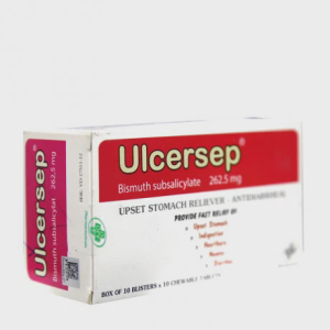 Viên nhai Ulcersep 262,5mg điều trị rối loạn tiêu hóa, ăn không tiêu, tiêu chảy (10 vỉ x 10 viên)