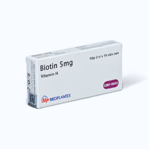 Viên nén Biotin 5mg rụng tóc, viêm da bong, thiếu hụt vitamin H (2 vỉ x 10 viên)