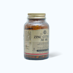 Thực phẩm bảo vệ sức khỏe Solgar Zinc Citrate 30mg Hỗ trợ chống lão hóa (Chai 100 viên)