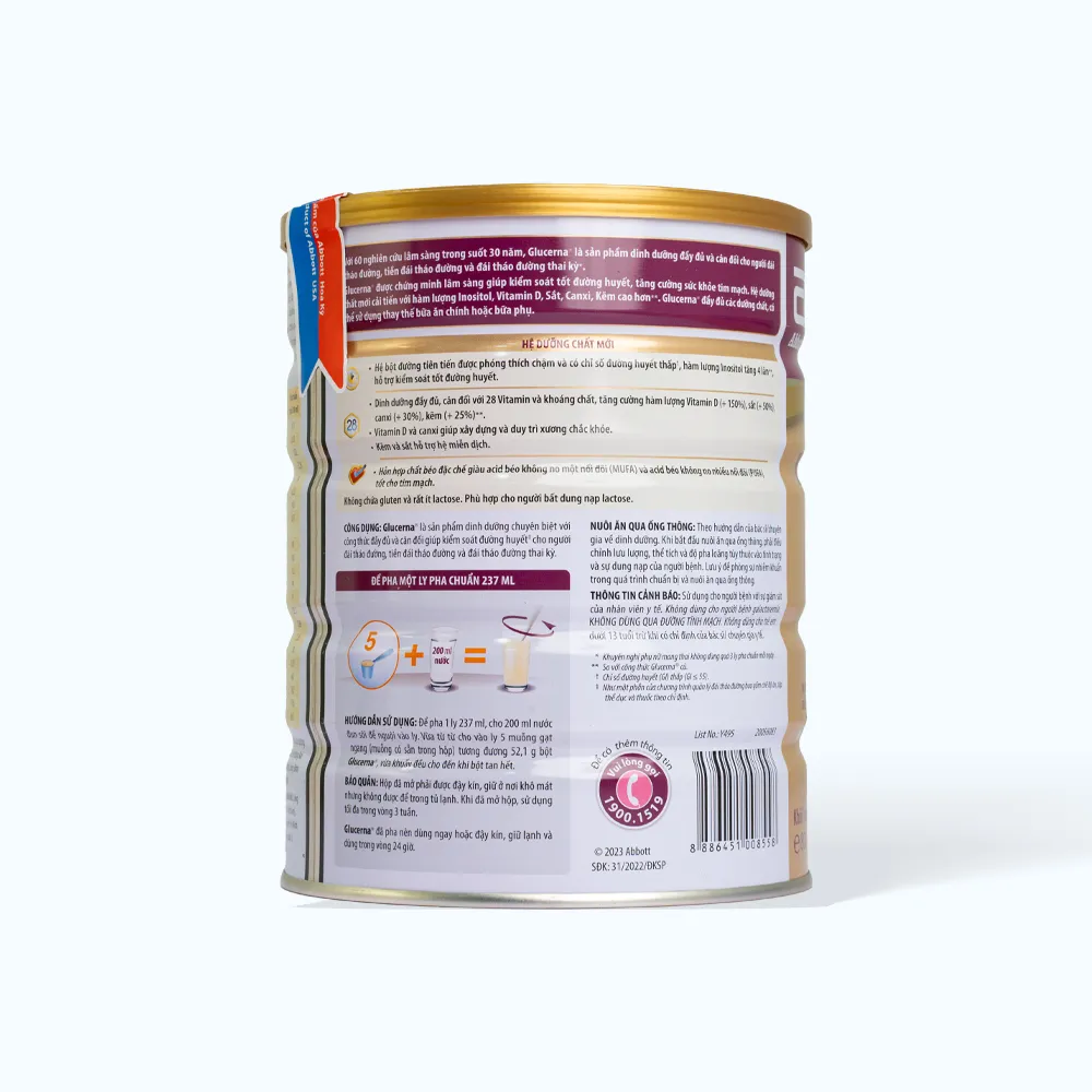 Glucerna là sản phẩm dinh dưỡng chuyên biệt với công thức đầy đủ và cân đối giúp kiểm soát đường huyết cho người đái tháo đường, tiền đái tháo đường và đái tháo đường thai kỳ.