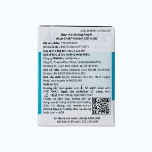 Que thử đường huyết Accu‑Chek Instant với các dòng máy đo đường huyết Accu‑Chek Instant và Accu‑Chek Instant S được dùng cho bệnh nhân đái tháo đường để tự xét nghiệm chẩn đoán in vitro.