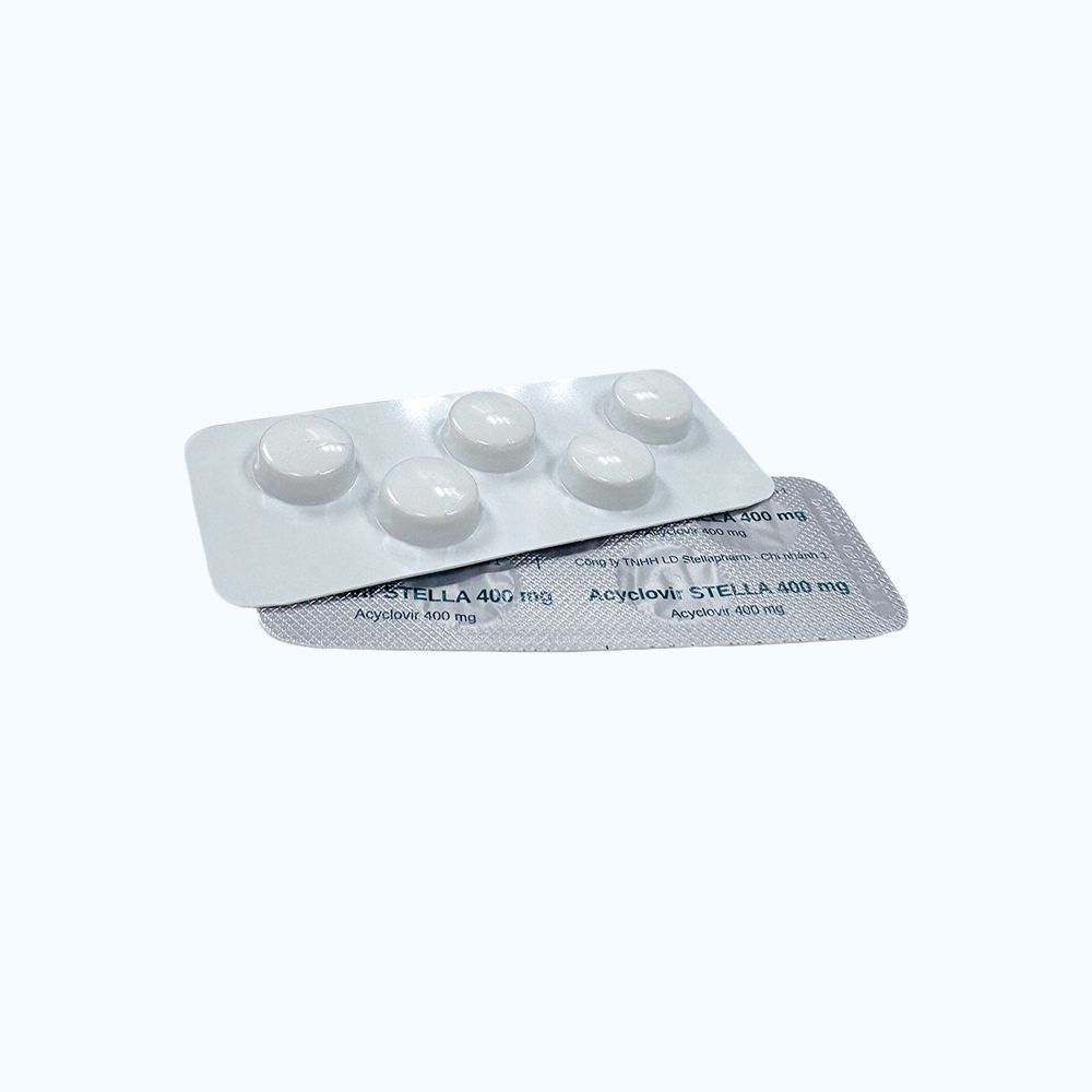 Probenecid ức chế cạnh tranh đào thải acyclovir qua ống thận, làm tăng thời gian bán thải (tới 40%), giảm thải trừ qua nước tiểu và độ thanh thải qua thận của Acyclovir Stella 400mg.