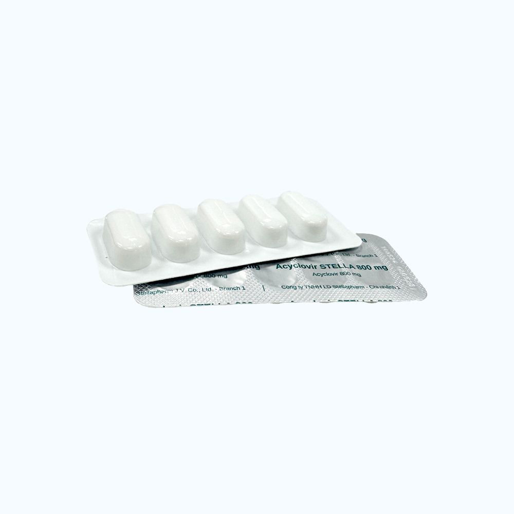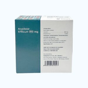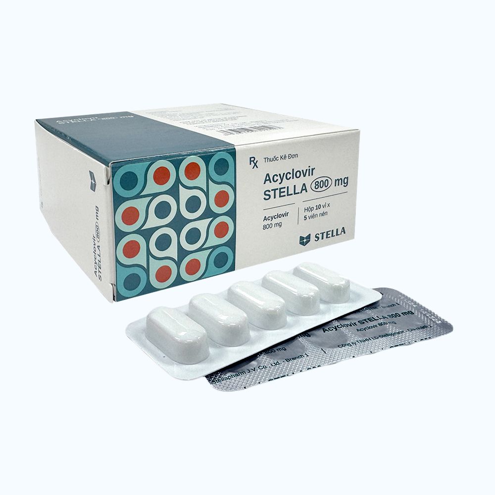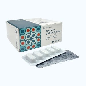 Herpes zoster 800 mg x 5 lần/ngày có thể trong khoảng 7 – 10 ngày. Liều dùng cho người suy thận Nên giảm liều của acyclovir ở bệnh nhân suy thận tùy theo độ thanh thải creatinin (CC). CC < 10 ml/phút Nhiễm Herpes simplex: 200 mg mỗi 12 giờ. Nhiễm Varicella zoster: 800 mg mỗi 12 giờ. CC khoảng 10 và 25 ml/phút Nhiễm Varicella zoster: 800 mg x 3 lần/ngày mỗi 8 giờ. Khuyến cáo sử dụng Acyclovir Stella 200 mg và/hoặc Acyclovir Stella 400 khi dùng liều 200 mg, 400 mg.