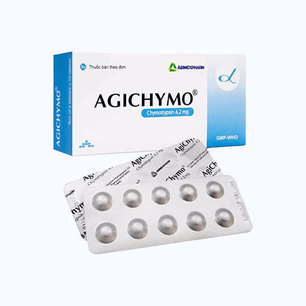 Agichymo là một loại thuốc chứa hoạt chất chymotrypsin, một enzyme phân giải protein. Thuốc này được sử dụng chủ yếu để giảm viêm và sưng tấy trong các tình trạng như viêm phế quản, viêm xoang, viêm khớp, và sau các phẫu thuật. Chymotrypsin hoạt động bằng cách phân giải protein trong mô bị viêm, giúp giảm sưng và đau.