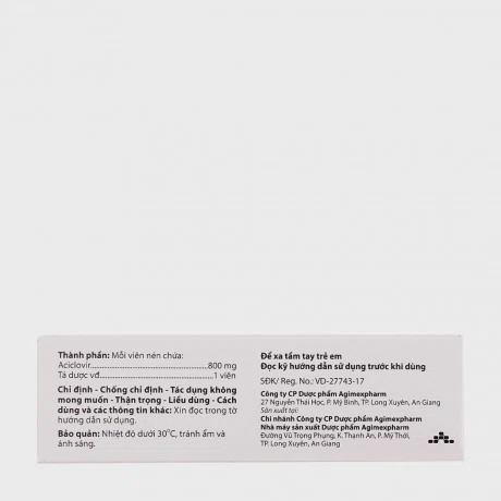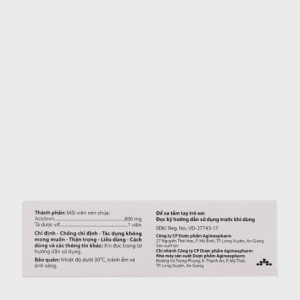 Viên nén Agiclovir 800 là một loại thuốc kháng vi-rút được sử dụng để điều trị các bệnh nhiễm vi-rút như vi-rút Herpes zoster (bệnh zona) và vi-rút Varicella-zoster (bệnh thủy đậu). Thành phần chính của thuốc là Acyclovir, hoạt động bằng cách ức chế sự nhân lên của vi-rút trong cơ thể.