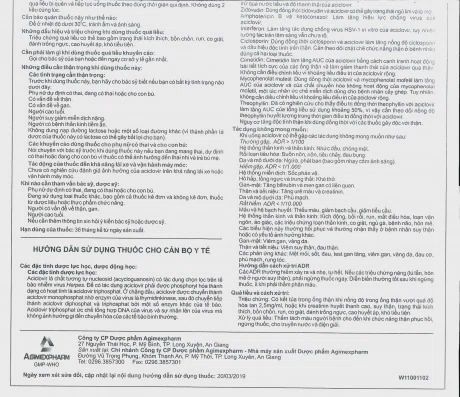 Điều trị nhiễm virus Varicella zoster (bệnh thủy đậu) và virus Herpes zoster (bệnh zona): Uống 800 mg/lần x 5 lần/ngày (cách nhau 4 giờ), điều trị liên tục trong 7 ngày.