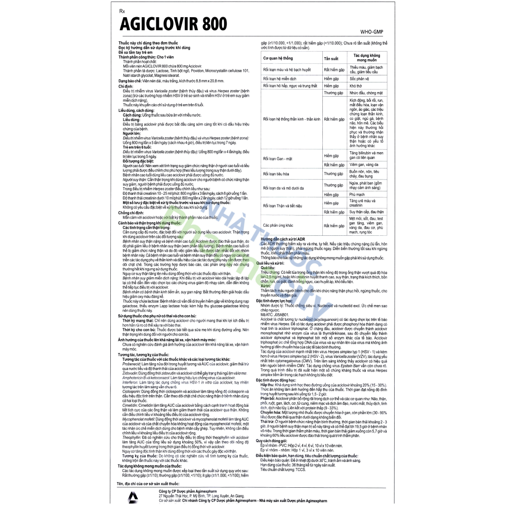Công dụng Viên nén Agiclovir 800