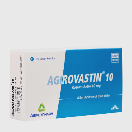 Agirovastin 10mg (3 vỉ x 10 viên) là thuốc kê đơn có thành phần chính là Rosuvastatin, được sử dụng để giảm cholesterol và mỡ máu.
