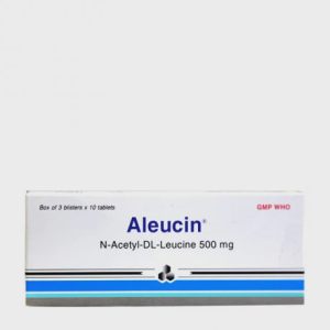 Aleucin 500mg là sản phẩm thuốc do Công ty Cổ phần Dược Trang Thiết Bị Y Tế Bình Định sản xuất với thành phần hoạt chất là N-Acetyl-DL-Leucin và được chỉ định trong điều trị các trường hợp chóng mặt.
