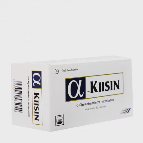 Alpha-Kiisin dạng viên nén chứa hoạt chất α-Chymotrypsin được sản xuất bởi Công ty Cổ phần Pymepharco. Alpha-Kiisin là thuốc chống phù nề, kháng viêm dạng men, điều trị các trường hợp phù nề sau chấn thương hoặc sau mổ.