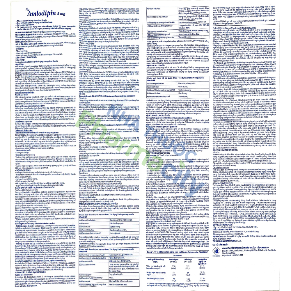 - Hoạt chất chính: Amlodipin besylate tương đương với 5mg Amlodipin.