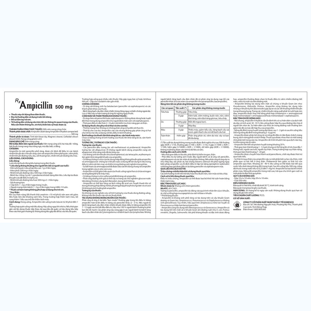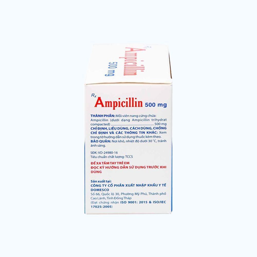 Ampicillin 500 mg dùng đường uống.