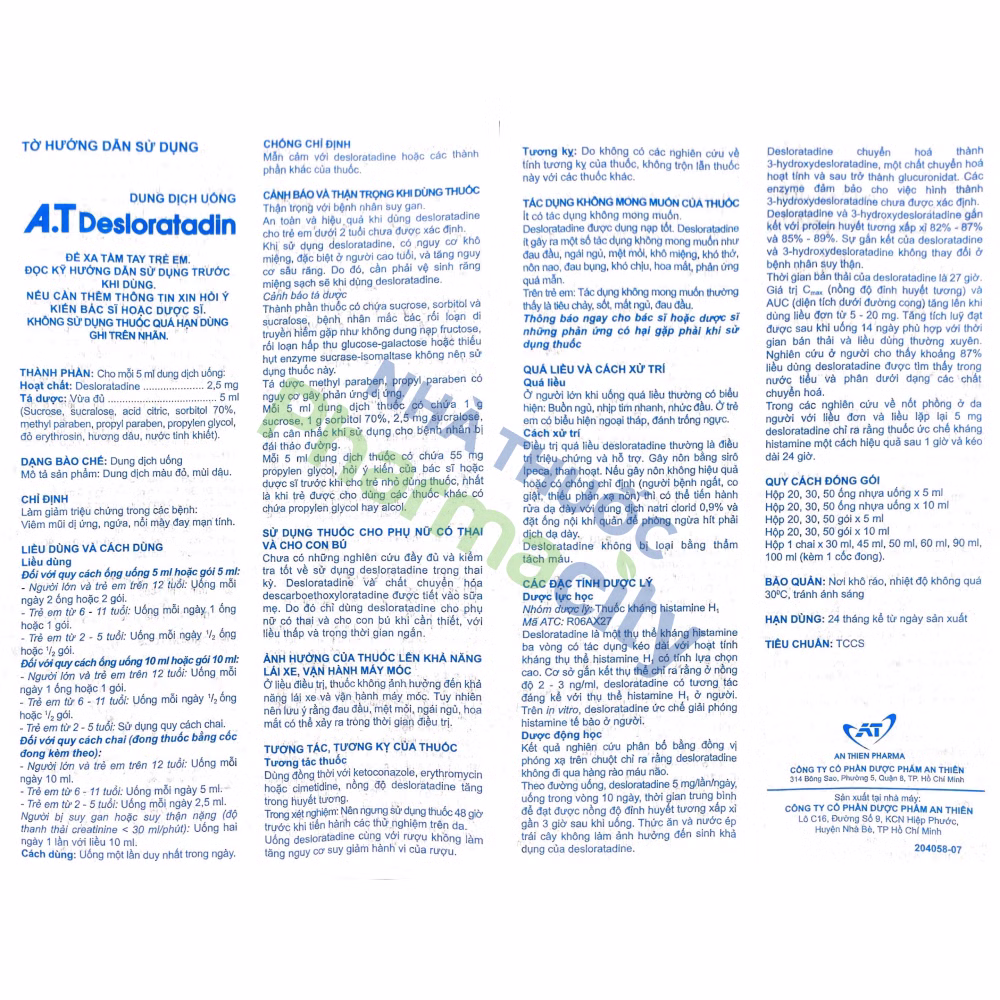 Siro A.T Desloratadin 2.5mg/5ml là gì?