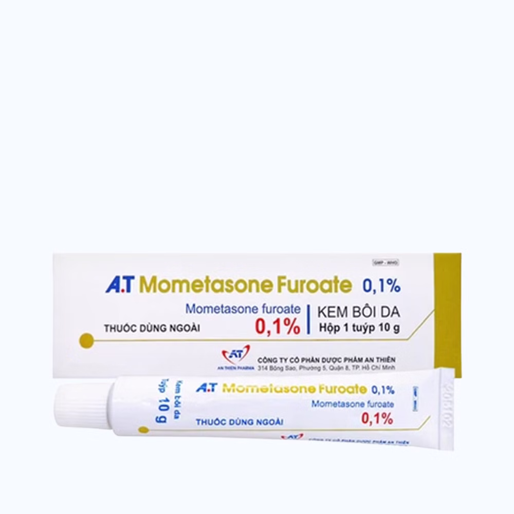 - Kem bôi da A.T Mometasone furoate 0,1% được chỉ định cho người lớn và trẻ em từ 2 đến 18 tuổi để điều trị các biểu hiện viêm và ngứa của bệnh vảy nến (ngoại trừ vảy nến dạng mảng lan rộng) và viêm da dị ứng.