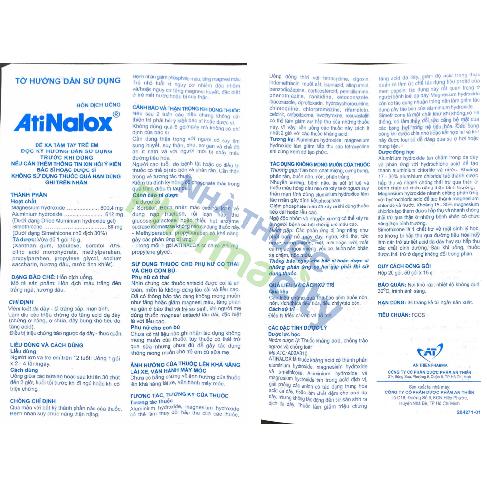 Thuốc kháng acid: Uống cách 2 giờ với thuốc AtiNalox.
