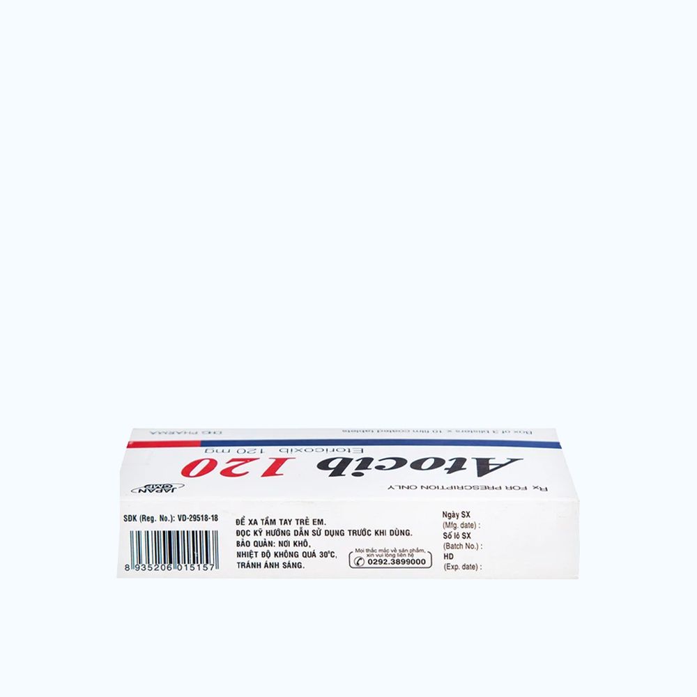 Atocib với hoạt chất etoricoxib, là một thuốc chống viêm không steroid, ức chế chọn lọc cyclooxygenase – 2 (COX – 2), có tác dụng chống viêm, giảm đau, hạ sốt. Etoricoxib không ức chế tổng hợp prostaglandin dạ dày và không có ảnh hưởng trên chức năng tiểu cầu.
