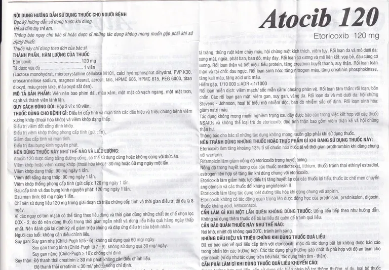 Khi sử dụng thuốc Atocib, bạn có thể gặp các tác dụng không mong muốn (ADR).