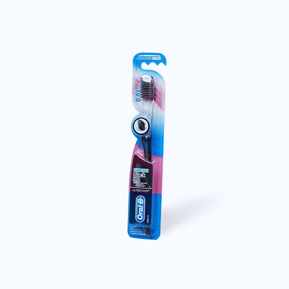 Bàn chải đánh răng Oral-B Trà ĐenBlack Tea Gum Carevới đầu lông bàn chải siêu mềm dễ dàng chải sạch mảng bám và vi khuẩn tận sâu bên trong răng miệng. Cấu trúc lông bàn chải thông minh len lỏi vào từng kẽ răng giúp chải răng sạch hơn, massage nướu, lợi, loại bỏ mảng bám cứng đầu, cho bạn hàm răng trắng khỏe và hơi thở thơm tho.