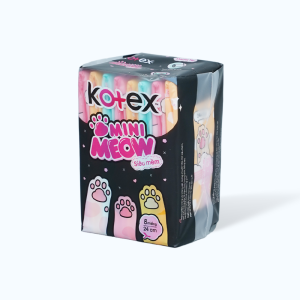 Băng vệ sinh Kotex Mini Meow siêu mềm 24cm có kích thước nhỏ gọn, chống thấm hiệu quả cùng họa tiết xinh xắn, phù hợp theo bạn gái đến bất kỳ đâu.