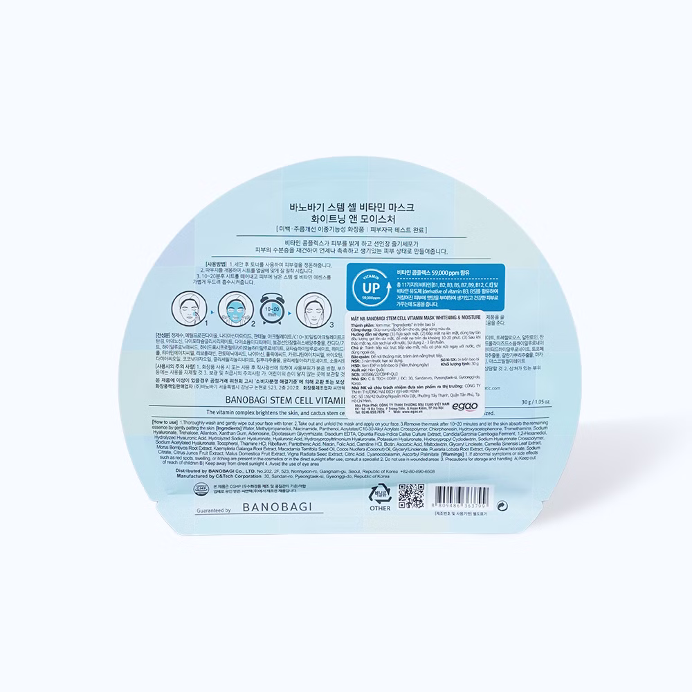 Mặt nạ BANOBAGI Whitening & Moisture Dưỡng Sáng Và Cấp Ẩm Cho Da (Miếng 30ml)
