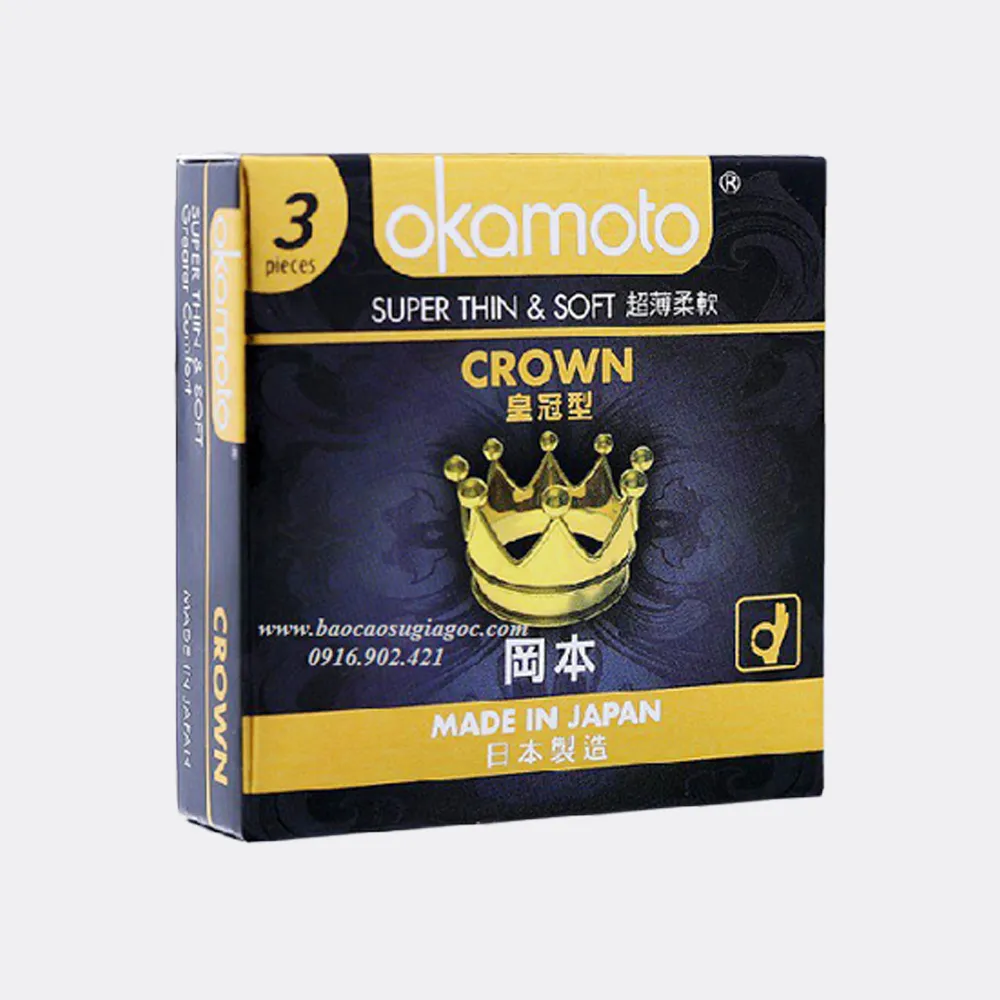 Bao Cao Su Okamoto Crown là sản phẩm bao cao su cao cấp, được thiết kế để mang lại cảm giác chân thật nhất khi quan hệ tình dục. Sản phẩm được sản xuất bởi Okamoto, một thương hiệu nổi tiếng trong ngành bao cao su.
