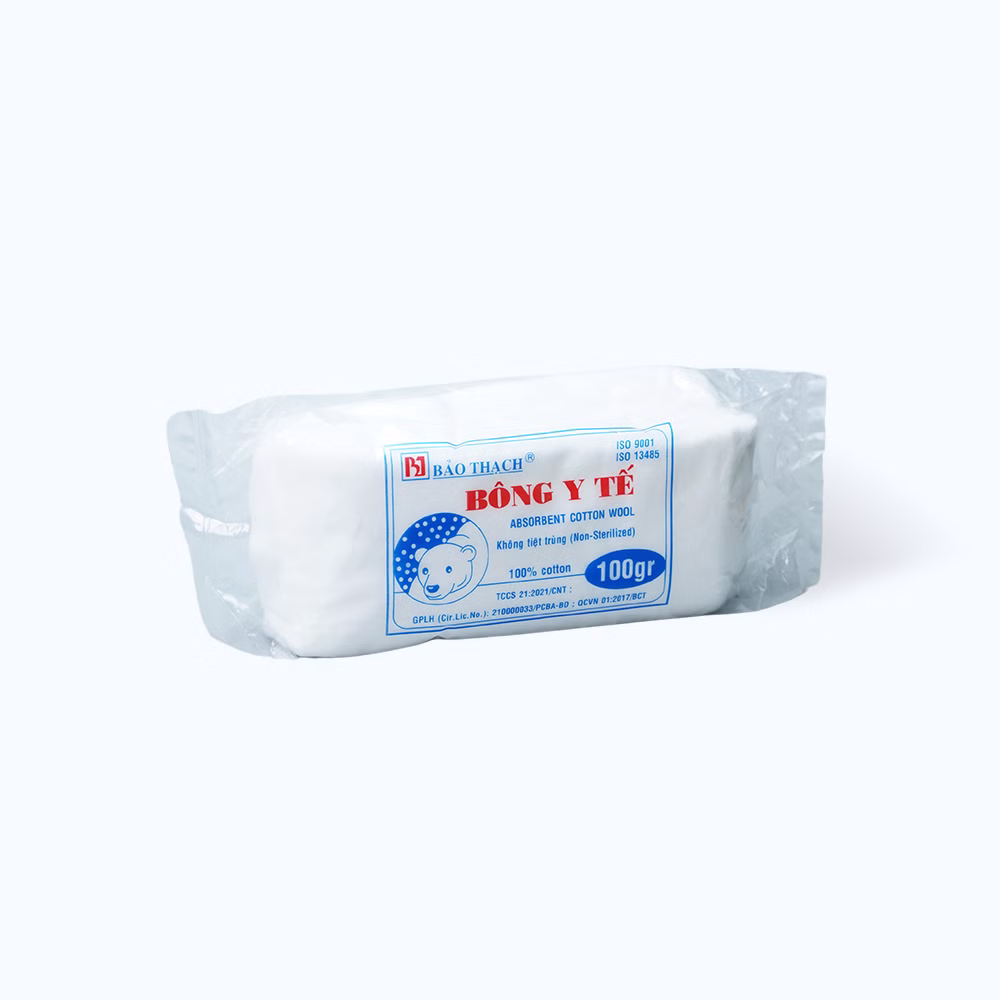 Bông y tế Bảo Thạch có khả năng thấm hút cao và nhanh, mịn màng, mềm mại, không gây kích ứng da. Bông trắng, sạch và thân thiện với môi trường.