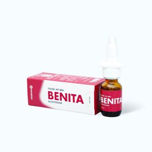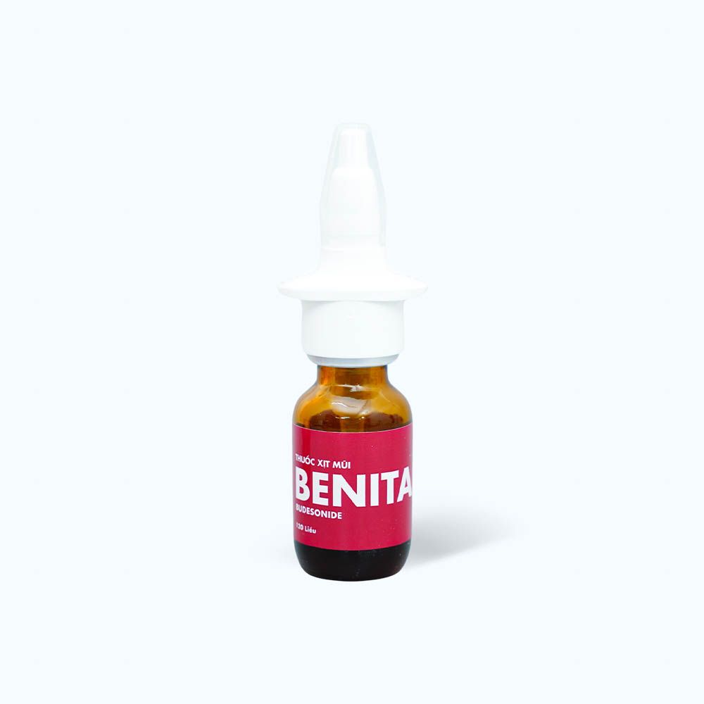 Thuốc Benita là sản phẩm của Công Ty Cổ Phần Tập Đoàn Merap, chứa dược chất chính là budesonid – một loại thuốc corticosteroid, được dùng để điều trị viêm mũi dị ứng quanh năm và viêm mũi dị ứng theo mùa, viêm mũi do rối loạn vận mạch, dự phòng tái phát polyp mũi sau phẫu thuật cắt polyp, điều trị triệu chứng polyp mũi.