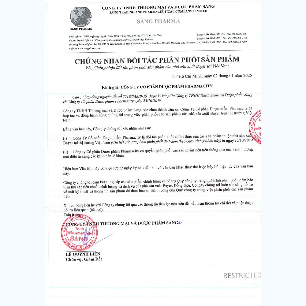Công ty chịu trách nhiệm về SP: Công Ty TNHH Bayer Việt Nam