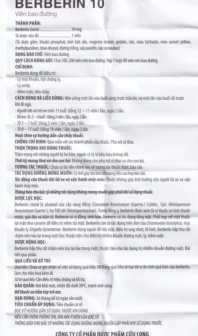 Thuốc Berberin 10 được chỉ định dùng trong các trường hợp sau: