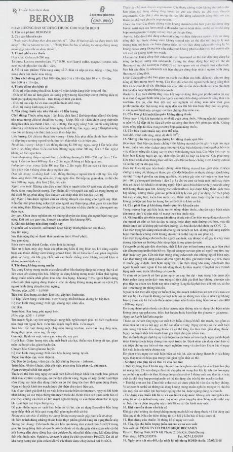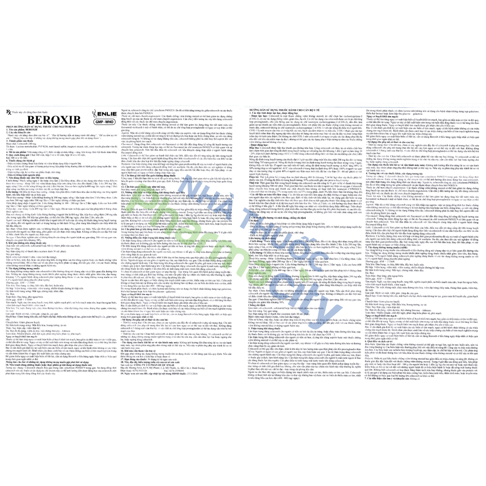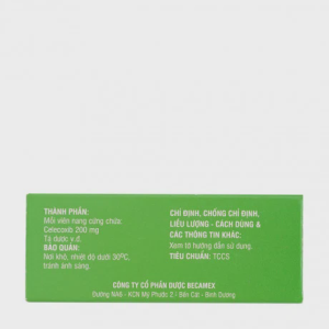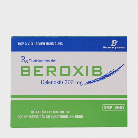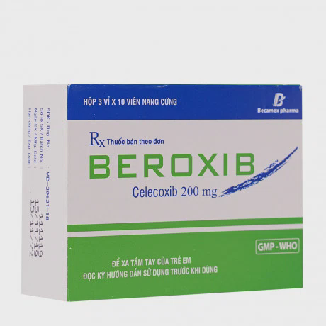 Viên nang Beroxib 200mg chứa hoạt chất celecoxib, là một loại thuốc chống viêm không steroid (NSAIDs) dùng để giảm đau và viêm. Nó thường được sử dụng để điều trị các bệnh viêm khớp như viêm khớp dạng thấp và viêm xương khớp. Celecoxib hoạt động bằng cách ức chế enzyme COX-2, giúp giảm đau và viêm mà không gây ra nhiều tác dụng phụ trên dạ dày như các NSAIDs khác.