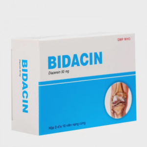 Viên nang Bidacin 50mg là sản phẩm chứa hoạt chất Diacerein, được sử dụng để điều trị triệu chứng thoái hóa khớp. Diacerein có tác dụng chống viêm và giảm đau, giúp cải thiện chức năng khớp và làm chậm tiến trình thoái hóa khớp. Sản phẩm được đóng gói thành hộp 3 vỉ, mỗi vỉ 10 viên, thuận tiện cho việc sử dụng và bảo quản. Bidacin 50mg thường được chỉ định sử dụng lâu dài dưới sự hướng dẫn của bác sĩ để đạt hiệu quả tốt nhất trong việc điều trị thoái hóa khớp.