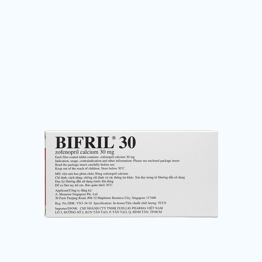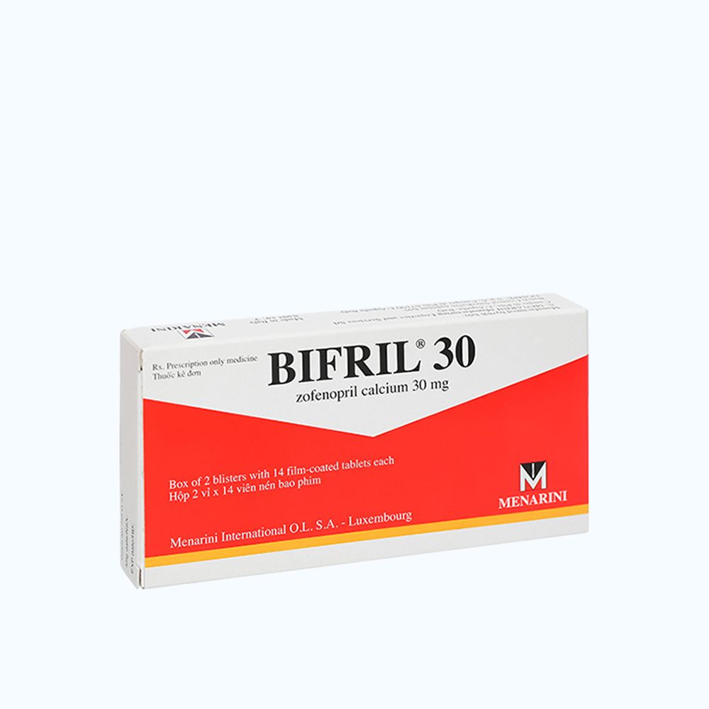 Một thử nghiệm lâm sàng ngẫu nhiên có đối chứng đã được thực hiện, so sánh zofenopril với giả dược được thực hiện trên 1556 bệnh nhân có tiền sử nhồi máu cơ tim và không được điều trị bằng phác đồ tiêu sợi huyết. Phác đồ được bắt đầu trong vòng 24 giờ và kéo dài trong 6 tuần. Tỷ suất xuất hiện tiêu chí đầu ra kết hợp (suy tim nặng và/hoặc tử vong sau 6 tuần) giảm trên nhóm bệnh nhân điều trị bằng zofenopril (zofenopril 7,1%, giả dược 10,6%). Sau 1 năm, tỷ lệ sống được cải thiện trên nhóm bệnh nhân điều trị bằng Bifril.