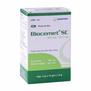 Biocemet SC 500mg/62.5mglà một loại thuốc kháng sinh, thường được sử dụng để điều trị các nhiễm khuẩn do vi khuẩn nhạy cảm với thuốc.