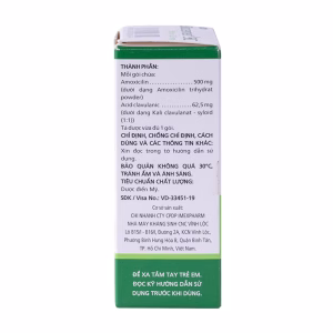 - Amoxicilin (dưới dạng Amoxicilin trihydrat powder 500mg.