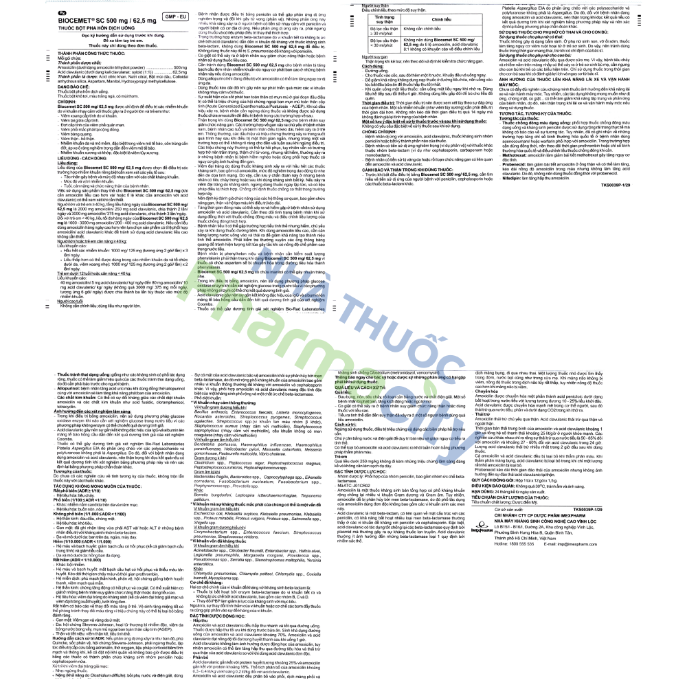 Thành phần của Bột pha uống Biocemet SC 500mg/62.5mg