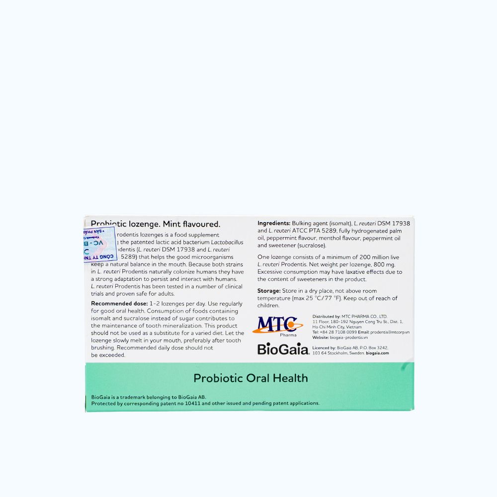 Biogaia Prodentis Lozenges hỗ trợ bảo vệ sức khỏe răng lợi, hỗ trợ giảm nguy cơ viêm lợi, niêm mạc miệng, chảy máu chân răng, hôi miệng.