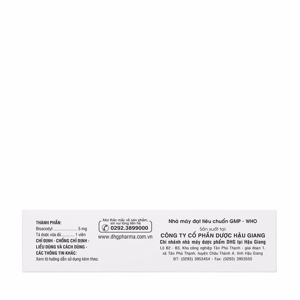 Thành phần Bisacodyl DHG (4 Vỉ x 25 Viên)