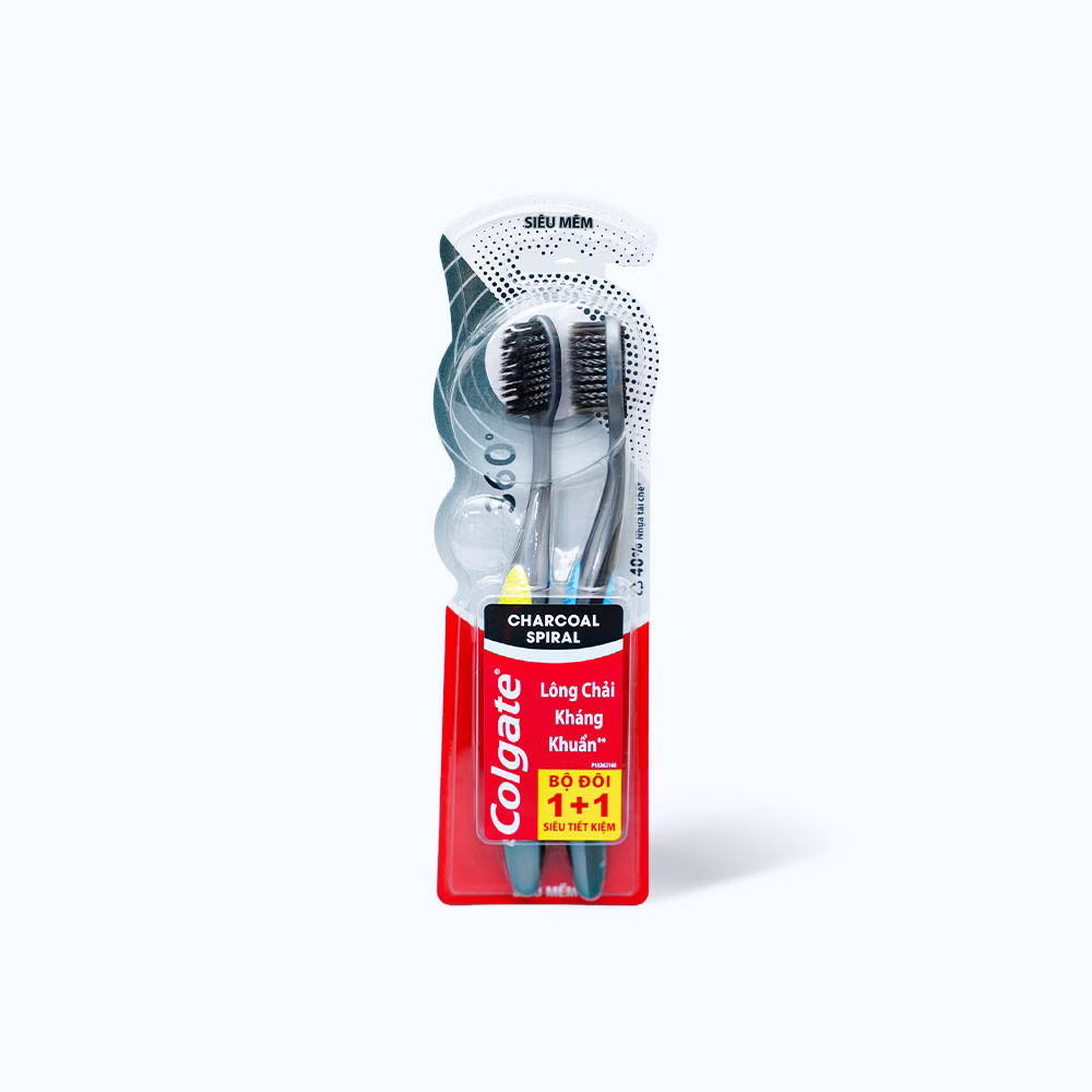 Bộ Đôi Bàn Chải Đánh Răng COLGATE 360 Charcoal Spiral Lông Chải Siêu Mềm Xoắn Kép Phủ Than là gì?