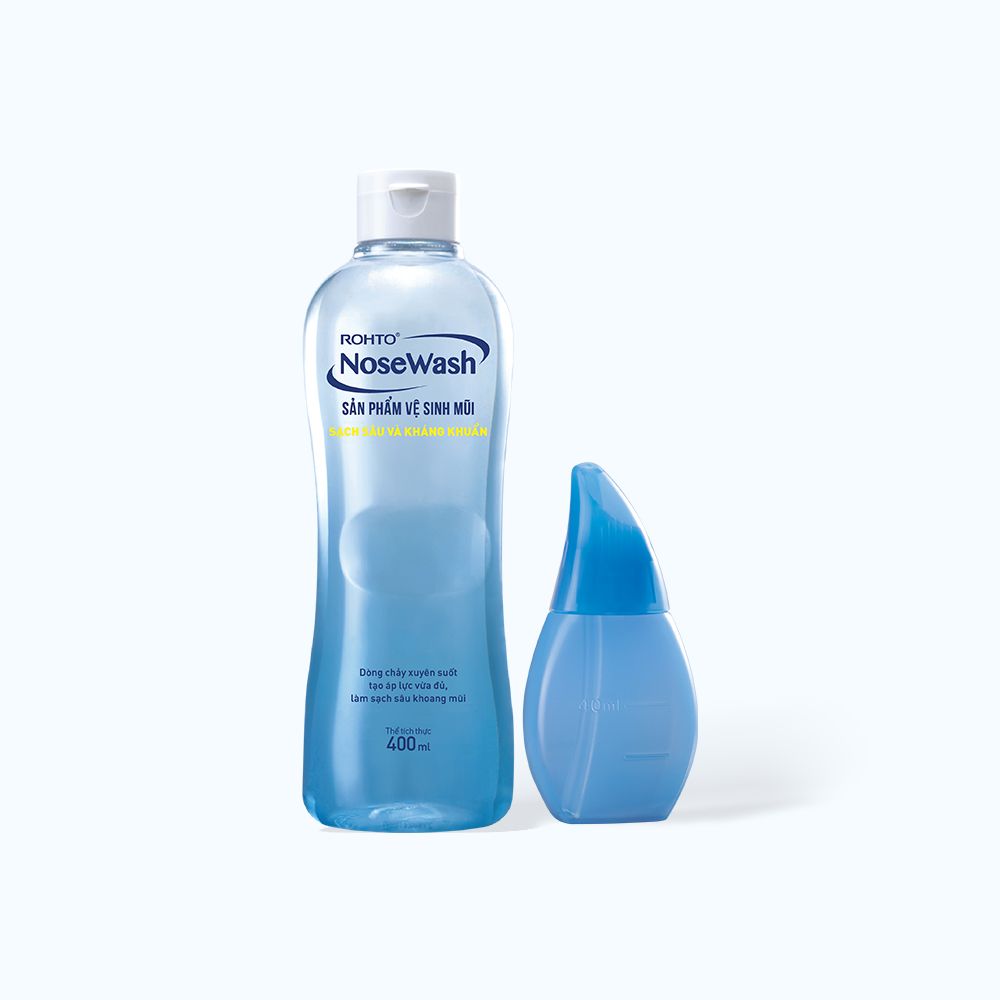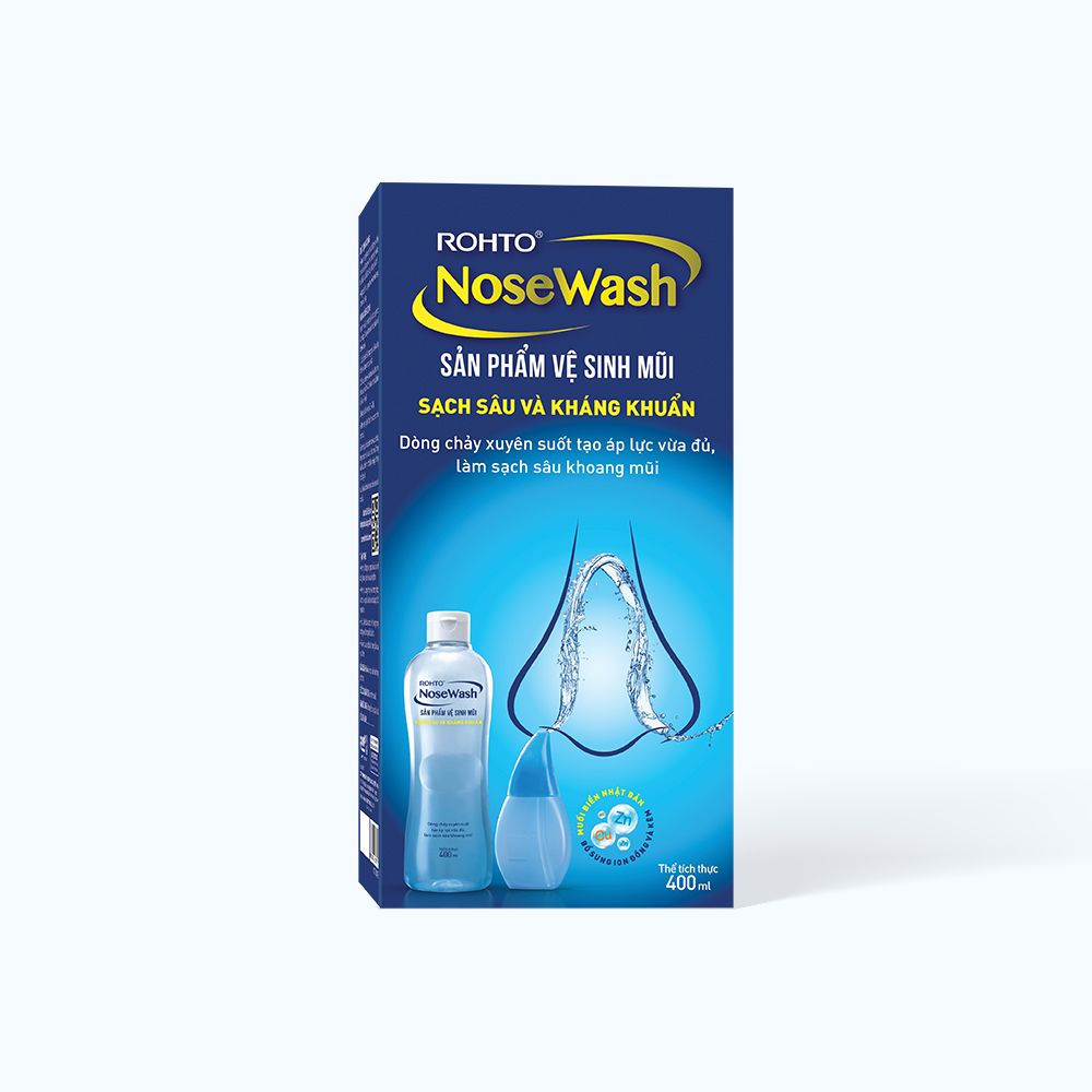 Bộ vệ sinh mũi ROHTO NoseWashlà sản phẩm hỗ trợ làm sạch sâu khoang mũi và kháng khuẩn, giúp loại bỏ bụi bẩn, chất nhầy, và các tác nhân gây dị ứng. Sản phẩm bao gồm một bình vệ sinh mũi và một bình dung dịch 400ml.