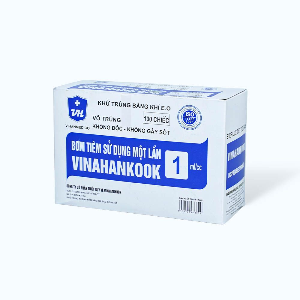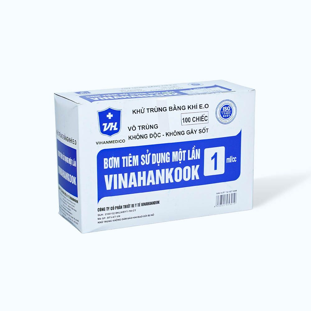 Trên thị trường hiện nay có nhiều mẫu kim tiêm khác nhau, bơm tiêm sử dụng một lần 1ml/cc Vinahankook đến từ thương hiệu Vinahankook được khử trùng bằng E.O, vô trùng, không gây độc và không gây sốt. Hộp thiết kế 100 chiếc thoải mái cho người sử dụng.