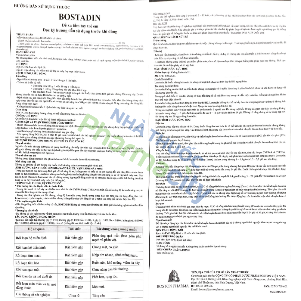 – Loratadin làm giảm bớt triệu chứng của viêm mũi và viêm kết mạc dị ứng do giải phóng histamin. Ngoài ra thuốc còn có tác dụng chống ngứa và nổi mày đay liên quan đến histamin. Thuốc kháng histamin không có vai trò trong điều trị hen.