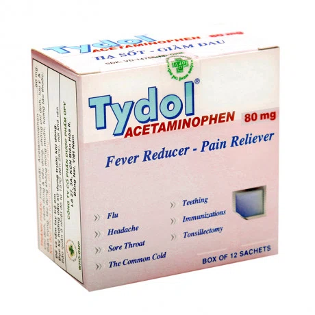 Tydol 80 mg là thuốc bột pha uống dùng để giảm đau và hạ sốt, phù hợp với trẻ em. Thuốc có hương vị giúp trẻ dễ uống hơn.