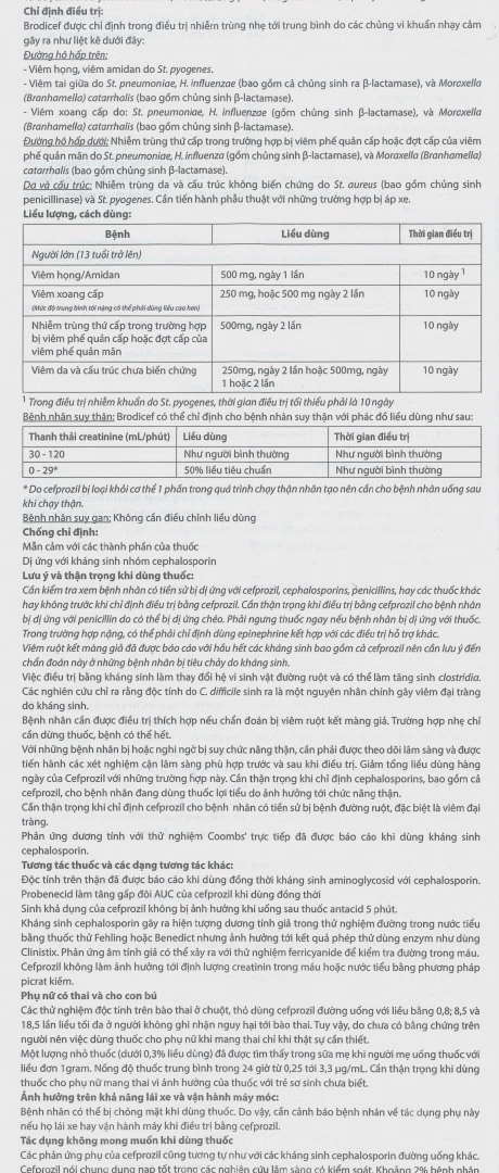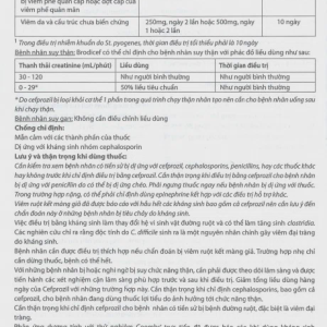 Bênh nhân suy thận: Brodicef có thể chỉ định cho bệnh nhân suy thận với phác đồ liều dùng như sau: