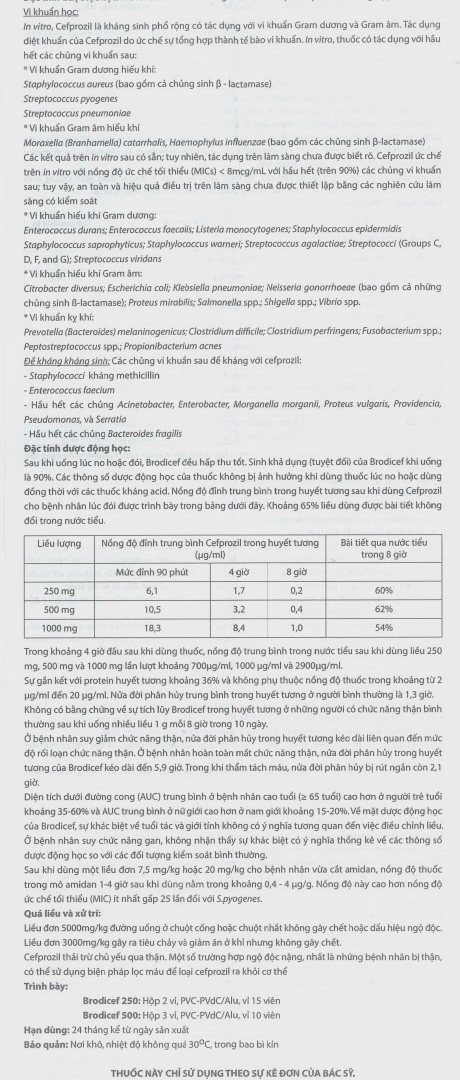Brodicef được chỉ định trong điều trị nhiễm trùng nhẹ tới trung bình do các chủng vi khuẩn nhạy cảm gây ra như liệt kê dưới đây: